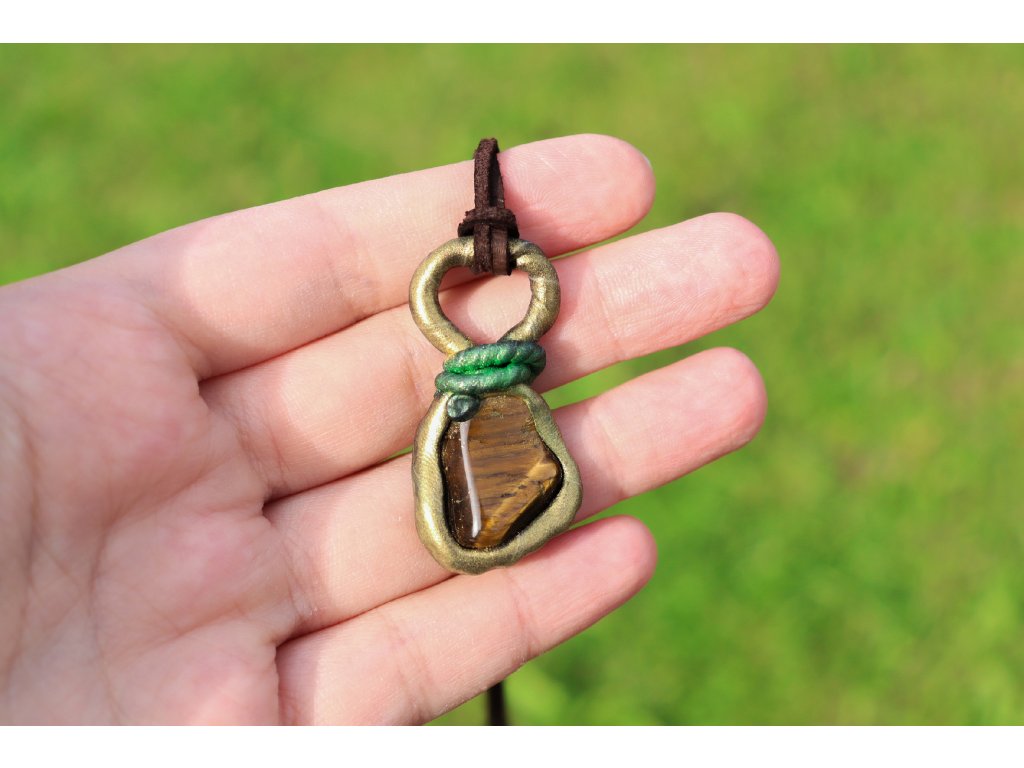 Šperk „Odvaha tygra“ je oslavou síly, sebevědomí a vnitřního ohně. Jeho jádrem je tygří oko, kámen chrabrých duší, který probouzí odvahu, soustředění a pevnost v okamžicích nejistoty. Tento krystal se třpytí zlatohnědými odlesky, jež se v pohybu mění jako oči samotného tygra – bdělé, moudré a neústupné.