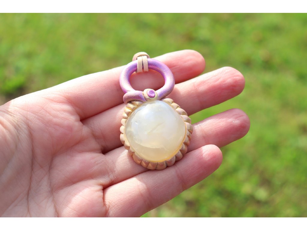 Šperk „Tanec víl“ je jemným vyjádřením hravosti a světla, které obklopuje něžné duše. Uprostřed září bílý achát, kámen čistoty a klidu, jehož hladký povrch evokuje jemnost ranní mlhy a tiší mysl, zatímco podporuje harmonii a rovnováhu.