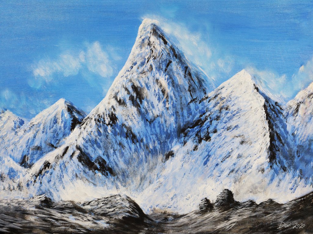 Kopie obrazu Himaláje o rozměru 40x30 cm. Jedná se o tisk na plátně, barvy se můžou lehce lišit i podle barevnosti vaší obrazovky.
