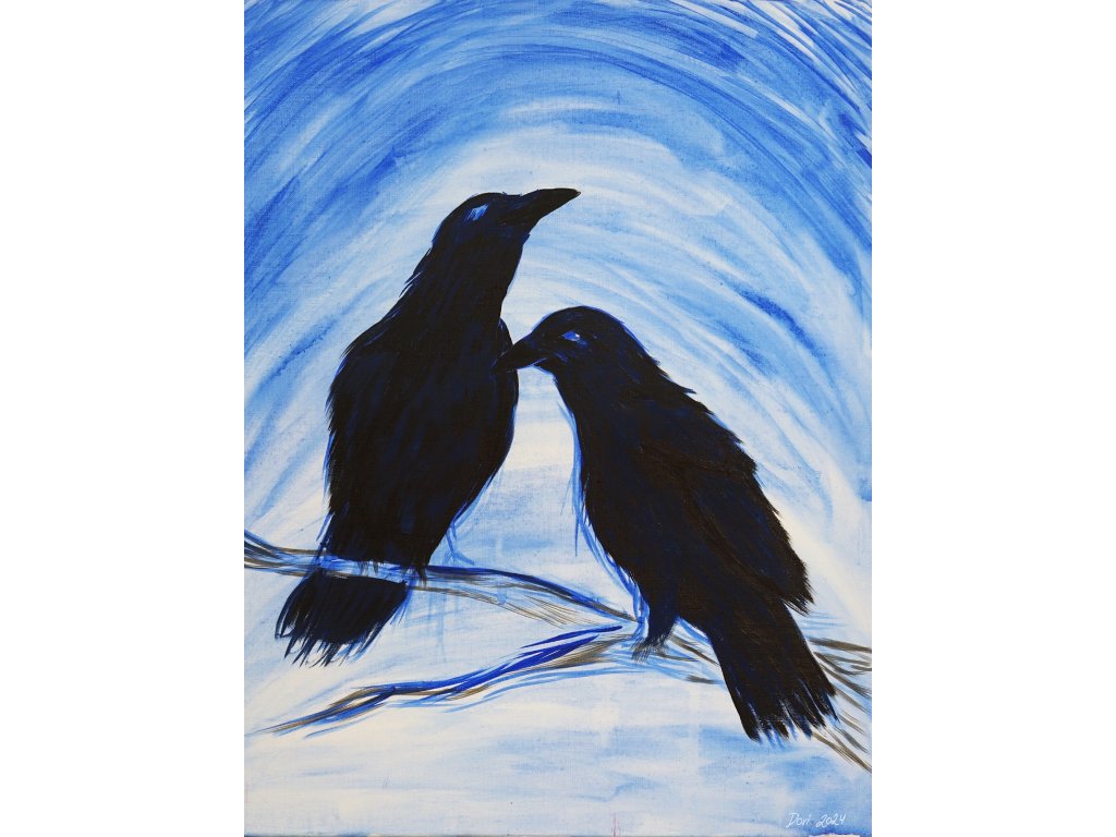 Kopie obrazu Hugin a Munin o rozměru 40x30 cm. Jedná se o tisk na plátně, barvy se můžou lehce lišit i podle barevnosti vaší obrazovky.